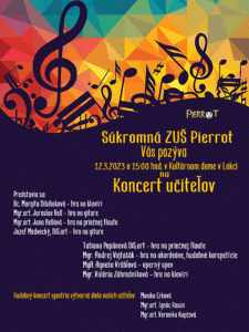 Súkromná ZUŠ Pierrot Námestovo pozýva občanov Lokce na koncert učiteľov, ktorý sa uskutoční dňa 12.03.2023 (nedeľa) o 15.00hod. v Kultúrnom dome v Lokci. Bližšie informácie sú uvedené v priloženom plagáte.
